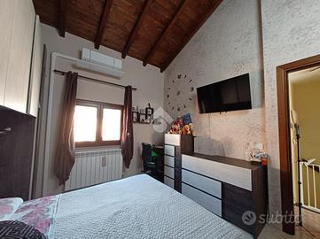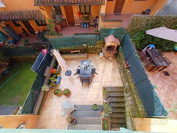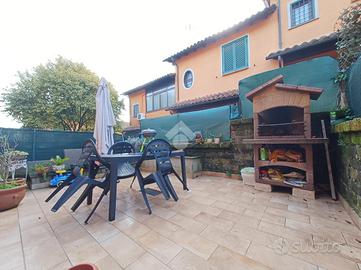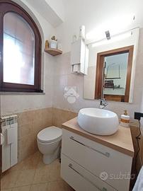 Nell'esclusivo Residence Lydia, proponiamo in vendita un delizioso villino a schiera completamente ristrutturato. L'immobile è così composto: soggiorno con angolo bar o angolo cucina e bagno di servizio al piano rialzato; camera da letto matrimoniale con alto soffitto caratterizzato da travi in legno a vista, cameretta con soppalco e balcone, e bagno con grande doccia al piano primo; grande cucina con dispensa nel piano terra. Completa la propietà un giardino pavimentato con barbecue esterno, portico e due posti auto. La casa è dotata di grate e persiane blindate in ferro, finestre ad arco e condizionatori.