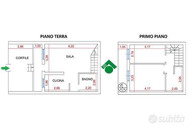 L'immobile si apre su un comodo cortile pavimentato, che, tramite una scala esterna, conduce all'interno dove ci accoglie un ampio soggiorno con angolo cottura, caratterizzato da una piacevole luminosità. Completa il piano terra un pratico bagno con vasca.