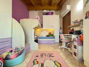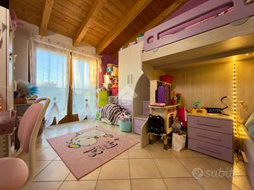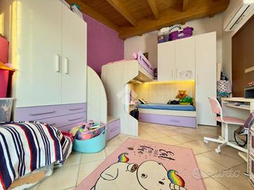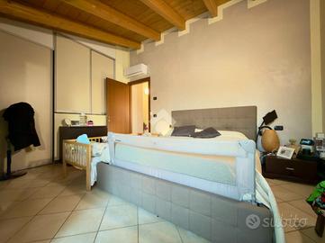 NOGAROLE ROCCA - VILLETTA A SCHIERA A Bagnolo di Nogarole Rocca, in una tranquilla zona residenziale, proponiamo in vendita una villa a schiera di recente costruzione (anno 2008), ideale per chi desidera vivere in un contesto sereno e riservato con tutti i comfort moderni. L'abitazione si sviluppa su più livelli e dispone di giardino privato fronte e retro, perfetto per momenti di relax e convivialità. Al piano terra si trovano un ampio e luminoso soggiorno, una cucina abitabile con accesso diretto al giardino, e un bagno di servizio. Dal disimpegno si accede al piano interrato dove troviamo una spaziosa taverna, una lavanderia e un garage doppio in larghezza collegato internamente all'abitazione. Al piano superiore, mansardato, si sviluppa la zona notte con due camere da letto: una camera matrimoniale con balcone privato, una camera doppia e un bagno finestrato. La villa è dotata di riscaldamento a pavimento, caldaia nuova, impianto di climatizzazione domotizzato e sistema d'allarme. Una soluzione curata, accogliente e pronta da abitare, perfetta per chi cerca spazi comodi, privacy e tranquillità in un contesto residenziale di qualità.