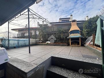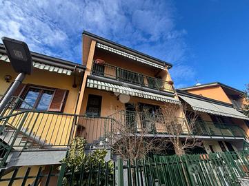 La casa è parte di un contesto residenziale di villette a schiera nate nei primi anni '90. Nata come grande unifamiliare, ma con due ingressi, si presta molto bene per essere abitata da due nuclei familiari. Al piano terra è presente un box auto ed è possibile posteggiare un auto davanti al box stesso. Dalla tavernetta del paino terra si può andare al cortiletto privato, ideale per chi vuole una piccola zona verde o semplicemente per avere uno spazio all aperto per la bella stagione. Sono presenti due cucine, servizi su ogni piano, affaccio su 4 balconi. La luminosità e lo stato curato e pulito degli ambienti rende la soluzione abitabile subito senza troppi accorgimenti. Le spese del villaggio sono contenute; ciascuna villetta ha contatori parziali acqua. E' presente uno spazio esterno al villaggio con posteggio auto pubblico.