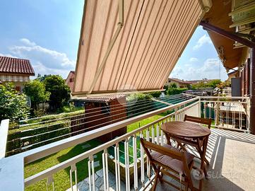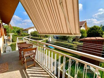 La proprietà dispone di due giardini privati. Quello frontale, accessibile da una scenografica scalinata in pietra, introduce all'ingresso principale con portoncino blindato, garantendo estetica e sicurezza. Sul retro, il giardino collegato al balcone della zona giorno è perfetto per pranzi e relax; ospita legnaia, fontana decorativa e impianto di irrigazione automatico per entrambi i giardini.
