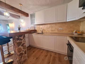 (192144589) - PREZZI A NOTTE GIUGNO 450, LUGLIO 500, AGOSTO 600 (già occupate le ultime due settimane di Luglio e le 2 settimane centrali di Agosto. Olbia, in un curatissimo residence edificato a strapiombo sulla Spiaggia di Su Sarrale, Località Li Cuncheddi, con una vista mare meravigliosa che spazia dal Golfo di Olbia sino a Golfo Aranci, proponiamo in affitto per la stagione estiva 2024 ampia villetta a schiera, su 2 livelli, di mq coperti 130 circa, oltre a 2 verande coperte arredate con tavoli per i pasti all'aperto, divani, griglia elettrica, oltre ad un ampio giardino privato di circa 80 mq. L' immobile al suo interno risulta essere così composto: ingresso su un primo salotto con divano letto matrimoniale, ulteriore ampio soggiorno/ pranzo con cucina open space, n° 3 camere da letto (una matrimoniale, una con 2 lettini singoli che si possono unire, una con un letto a castello), un ulteriore letto a comparsa per un totale di 8 posti letto comodi. N° 2 servizi igienici con doccia. Ripostiglio/ lavanderia, dispensa. La casa è appena stata completamente ristrutturata in stile Costa Smeralda rivisitato in chiave elegante ed è curatissima in ogni dettaglio. E' dotata di impianto di climatizzazione in ogni stanza e di tutti i servizi per farvi trascorrere al meglio le vostre vacanze. Il residence Li Cuncheddi offre una piscina condominiale gratuita con servizio sdraio e bagnino. 2 campi da tennis a pagamento. Tramite un caratteristico ed ombreggiato sentiero in 8 minuti a piedi si raggiunge la spiaggia di Su Sarrale, oppure in macchina 1 minuto di percorrenza. In spiaggia è a disposizione del residence, anche questo totalmente gratuito, il servizio sdraio ed ombrellone per tutto il giorno. L'aeroporto di Olbia dista 5 minuti di auto, stessa distanza per centro commerciale Auchan. In prossimità del residence invece troverete il piccolo centro di - Classe: B - IPE: 175.00 kWh/mq anno
