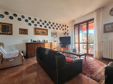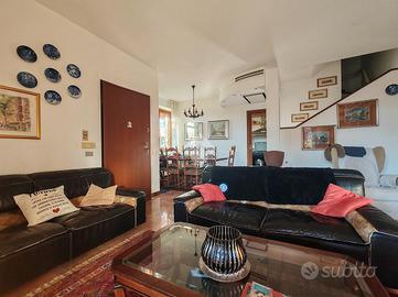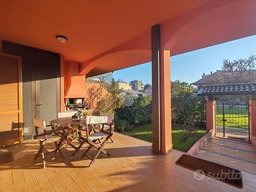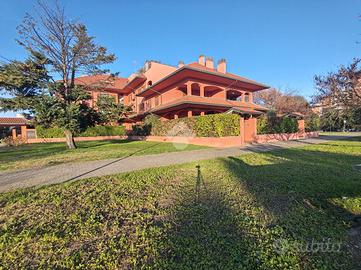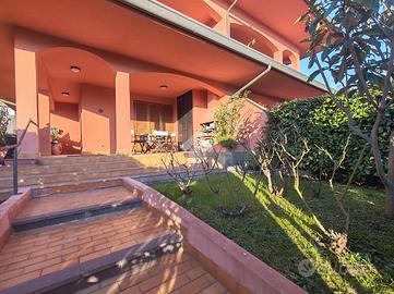 OPERA - In residenza d'Autore proponiamo in esclusiva affascinate Villa ideale per gli amanti del pollice verde, per chi cerca un'abitazione dove far crescere i propri figli e per chi lavora in smart working. Dall'ingresso pedonale principale accediamo alla parte esterna della villa dove è presente il giardino privato piantumato e il patio coperto affianco alla zona barbacue. La zona giorno è al piano rialzato ed è composta da ampio soggiorno antistante il patio, cucina abitabile di dimensioni generose e bagno cieco con doccia. Al primo piano è presente la zona notte composta da una camera da letto, una camera matrimoniale con annesso bagno en suite e terrazzo privato, uno studio e l'altro bagno cieco con doccia. La mansarda è un ampio open space con due pertinenze esterne di cui una coperta e l'altra a cielo aperto e un bagno con grande piatto doccia. Questo piano è un'ottima soluzione per chi lavora in smart working o per chi ha figli adolescenti o maggiorenni che vogliono un pò di indipendenza. Nella zona seminterrata invece è presente ampia taverna, luogo ideale dove trascorrere le festività natalizie e piacevoli momenti con parenti e amici. In questo ambiente, vicino all'ingresso secondario dell'abitazione è presente anche una pratica lavanderia. Completa questa soluzione abitativa un box doppio in larghezza dove le due autovetture sono indipendenti una dall'altra.