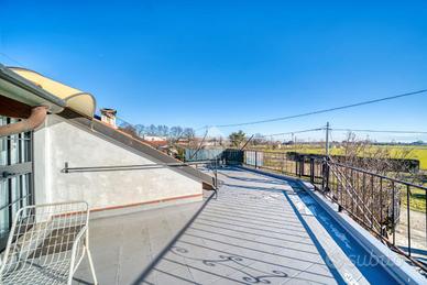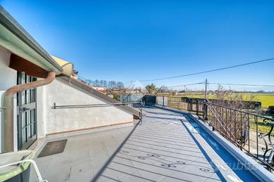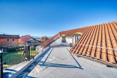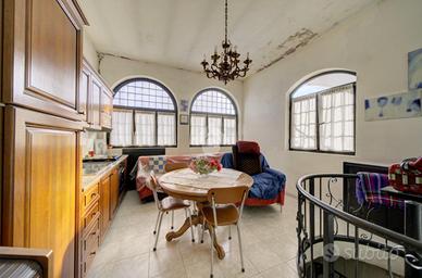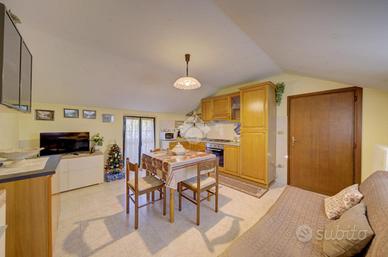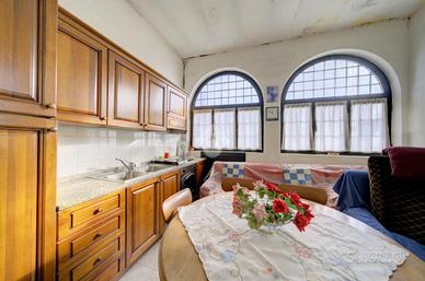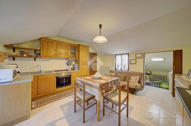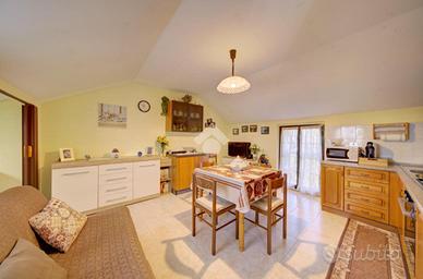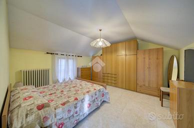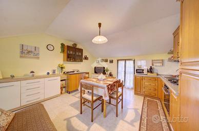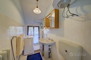 In zona verde casa semi indipendente con magazzino tettoia e box auto. Dal cortile e portico esterno si accede all' abitazione,la sala da pranzo è collegata da scala interna alla cantina ed è adiacente alla cucina. Al piano una stanza è adibita a soggiorno ed una a camera da letto. Il servizio è dotato di finestra.Al piano primo la mansarda è composta da due locali e terrazzo. Il giardino completa la proprietà.