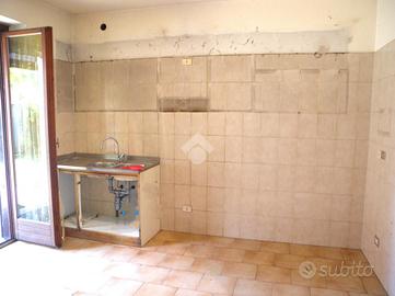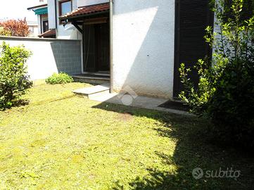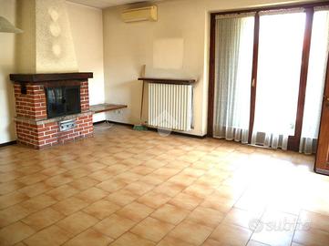 In piccolo complesso senza spese condominiali, villa a schiera composta da: al piano terreno ampio soggiorno con camino, cucina abitabile, bagno e giardino; al piano primo 2 camere matrimoniali, bagno e ampio terrazzo coperto, al piano interrato ampia cantina che potrebbe essere utilizzata come taverna, box e posto auto al piano terreno. Libera subito..