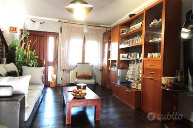 In zona riservata composta da ville, su strada a fondo cieco, proponiamo villa a schiera centrale ideale per chi cerca tranquillità, privacy e spazi ben distribuiti. L'ingresso pedonale conduce al piano rialzato, dove il portoncino blindato introduce nella luminosa zona giorno composta da soggiorno,cucina abitabile e primo bagno di servizio. La cucina è dotata di tapparella elettrica, soluzione pratica che garantisce maggiore comfort nell'utilizzo quotidiano. Salendo al primo piano troviamo la zona notte con due camere da letto rifinite in parquet, tra cui la camera matrimoniale con balcone e aria condizionata. Tutte le finestre sono dotate di inferriate di sicurezza, zanzariere e serramenti in legno con doppio vetro. Sullo stesso livello è presente anche un bagno con vasca idromassaggio. Il piano sottotetto ospita un ulteriore ambiente di circa 21 mq, uno spazio perfetto come studio, stanza hobby o terza camera. Al piano seminterrato la cantina è stata trasformata in accogliente taverna con camino. All'esterno la proprietà offre uno spazio frontale di circa 65 mq con autorimessa e un giardino sul retro di circa 76 mq. L'immobile è stato ristrutturato nel 2006, con rifacimento dei bagni del piano terra e del primo piano, installazione della caldaia a condensazione, impianto d'allarme e rifacimento dei pavimenti della zona giorno e della taverna. Una soluzione completa e funzionale, ideale per chi desidera vivere in una zona tranquilla senza rinunciare agli spazi e al comfort. Per maggiori informazioni o per fissare una visita, scrivici anche su WhatsApp al