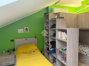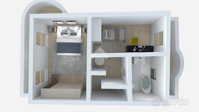 La soluzione presenta al piano terra un ampio soggiorno con cucina abitabile e bagno finestrato con doccia. Una comoda scala in muratura ci introduce nella zona notte formata da due camere di cui una matrimoniale ed un bagno finestrato con vasca; dalla zona notte tramite una scala in legno si accede all'ampia soffitta.