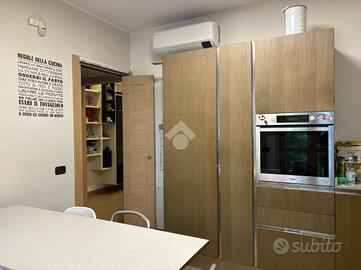 Ad impreziosire la soluzione una cantina adibita a taverna con ripostiglio e lavanderia nel piano interrato ed un giardino privato che circonda la casa.