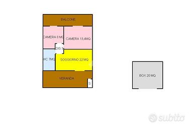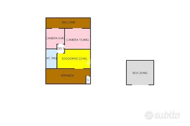 La proprietà è arricchita da un box auto di circa 20 mq, comodo e facilmente accessibile.