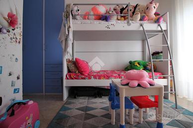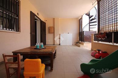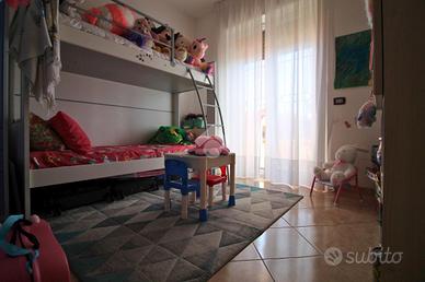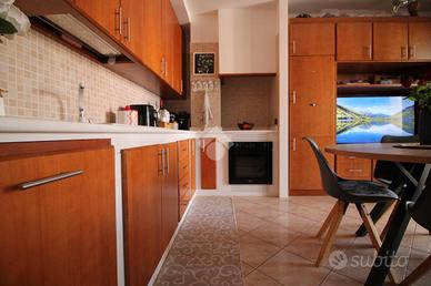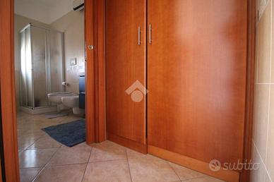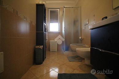 Nella zona giorno è presente un doppio climatizzatore a pompa di calore, mentre la pavimentazione in gres porcellanato, uniforme in tutti i vani, dona armonia e continuità. Gli infissi esterni in ferro antisfondamento e quelli interni in PVC a doppio vetro garantiscono sicurezza e isolamento.