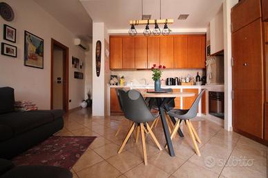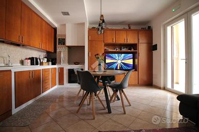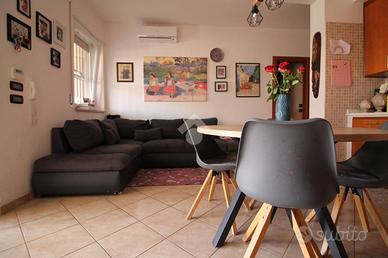 All'interno lo spazio si apre su un luminoso soggiorno con angolo cottura, cuore della casa, da cui si accede alla zona notte composta da due camere da letto di generose dimensioni, entrambe con affaccio su un balcone che dona luce naturale durante tutto il giorno. Un bagno finestrato con antibagno e box doccia completa la distribuzione interna.