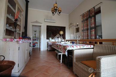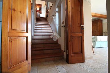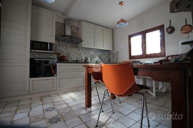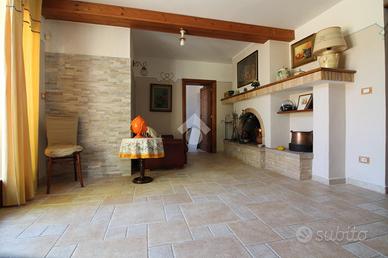 INCANTEVOLE VILLA A SCHIERA NEL CUORE DEL PAESE: Proponiamo in vendita una spaziosa e affascinate villa anni 50', situata nel cuore del paese, a pochi passi dai servizi principali. La struttura ha conservato tutti gli elementi tipici dell'epoca ma rivisitati in chiave moderna e rappresenta la giusta soluzione per chi cerca un giusto compromesso tra la villa in campagna e la comodità del vivere in paese. L'accesso è anticipato da un cancello automatico, segue l'area parcheggio e i diversi spazi esterni da godersi nelle giornate più soleggiate tutto ciò immerso in 1.700 mq di terreno. La villa si sviluppa su due livelli: un piano rialzato e un piano interrato. Il piano rialzato è reso ancora più ospitale da una grande veranda. All'interno ci accoglie un ampio e luminoso soggiorno e la comoda cucina che fungerebbe anche da sala pranzo; segue la zona notte composta da due spaziose camere da letto matrimoniali, un bagno con vasca e un pratico ripostiglio. Una scala interna collega il piano rialzato al piano interrato, che gode anche di un accesso esterno indipendente grazie al secondo ingresso. Questo livello offre una grande zona giorno con un meraviglioso camino, una confortevole cucina, due camere con bagno privato. Tra i punti di forza di questa villa troviamo: il doppio ingresso che garantisce maggiore indipendenza e comodità, le originali porte in legno che conferiscono all'immobile quel fascino in più, il riscaldamento tramite stufa a legna e condizionatori a pompa di calore e di notevole importanza il collegamento all'acquedotto. All'esterno, completa il tutto una graziosa dependance con bagno. Questa villa rappresenta una rara opportunità per chi desidera un immobile con ampi spazi, in una posizione strategica.
