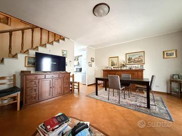 SCANNABUE: IN TRATTATIVA! Proponiamo in vendita villa a schiera centrale costruita nel 1989, con una superficie di 115 mq distribuiti su due livelli. La villa offre quattro locali ben organizzati, ideali per chi cerca spazi funzionali e accoglienti. La disposizione interna è studiata per garantire comfort e praticità, con ambienti che si adattano facilmente alle diverse esigenze abitative. Al piano terra si trova un grande soggiorno (30mq) ed una comoda cucina abitabile oltre al bagno di servizio con doccia; al piano primo tre camere da letto e bagno padronale con vasca. La proprietà è inoltre completa di giardino fronte e retro per un totale di 110mq, due portici, cantina al piano seminterrato e box. L'immobile si presenta in buono stato di manutenzione, è già dotato di zanzariere, aria condizionata, impianto fotovoltaico da 7kwh con batterie di accumulo da 20kwh, ideale per il funzionamento della caldaia ibrida installata. La posizione della villa permette di godere della tranquillità della zona, pur essendo a breve distanza dai principali servizi e collegamenti. Perfetta per chi desidera una soluzione abitativa che coniughi comodità e serenità, questa villa rappresenta un'opportunità interessante nel mercato immobiliare locale.