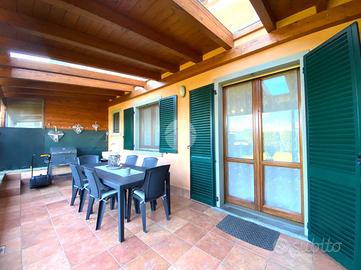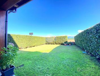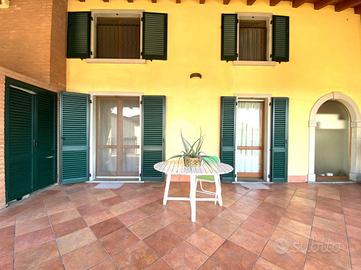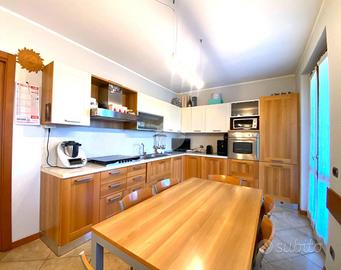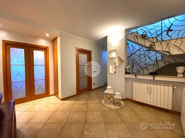 PALAZZOLO: Zona San Rocco, in ottimo contesto residenziale caratterizzato da villette a schiera. L'immobile ha una posizione centrale ed è servito da giardino fronte e retro; disposto su tre livelli oltre al piano interrato. Il piano terra è composto dall'ingresso sul luminoso soggiorno, cucina separata, bagno di servizio con doccia e doppio giardino: sul fronte e sul retro della casa. Salendo le scale al primo piano veniamo accolti da un disimpegno che conduce alla zona notte impreziosita da un bellissimo parquet, con due camere da letto matrimoniali, di cui una con cabina armadio e affaccio diretto su uno spazioso portico coperto. Presente ulteriore bagno servito da vasca idromassaggio. Nell'interrato invece, presente box doppio in larghezza, lavanderia con doccia e taverna caratterizzata dal camino. A completare la soluzione, spazioso sottotetto.