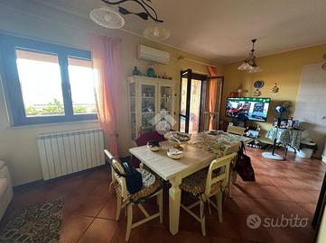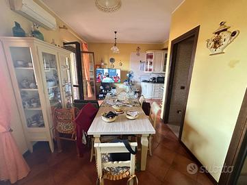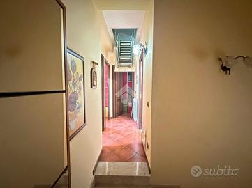 Il piano superiore offre un terrazzo panoramico, perfetto per momenti di relax o per organizzare cene all'aperto con vista sulla zona circostante. Il design interno dell'abitazione è curato nei minimi dettagli, con una pavimentazione mista in ceramica al piano terra e in cotto nelle camere al piano superiore, che crea un ambiente caldo e accogliente. Le porte in legno e la porta blindata in legno conferiscono un tocco di eleganza, mentre gli infissi in PVC assicurano un buon isolamento termico e acustico.
