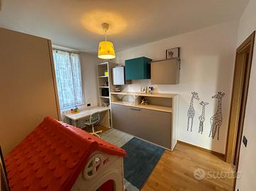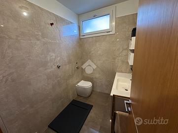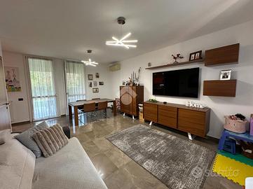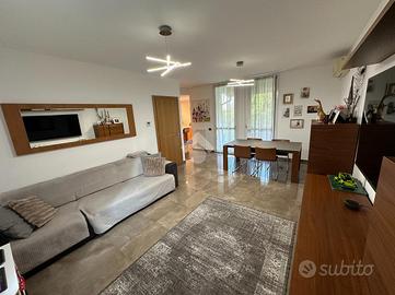 Inoltre l'unità è stata totalmente ristrutturata nel 2019 nei rivestimenti e negli impianti dotata di: paviemnto in gress porcellanato, giardino privato, porta blindata, riscaldamento autonomo, infissi in pvc (doppio vetro con camera d'aria), persiane, zanzariere, caldaia ibrida del 2022, aria condizionata, pavimentazione in parquet rovere zona notte, citofono video, pannelli fotovoltaici con batterie di accumulo, colonnina per auto elettrica ed esposizione Est-Ovest.