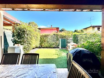 La proprietà è arricchita da un doppio giardino, fronte e retro, che assicura privacy e ottima esposizione solare per tutta la giornata.