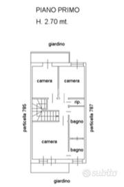 Al primo piano si sviluppa la zona notte, composta da due camere singole, una camera matrimoniale con terrazzo e bagno privato, un secondo bagno finestrato e un pratico ripostiglio.