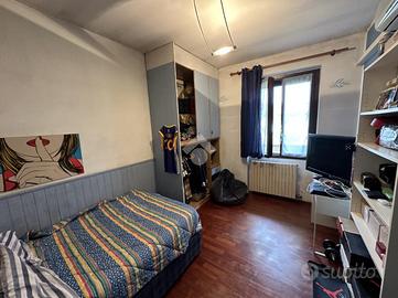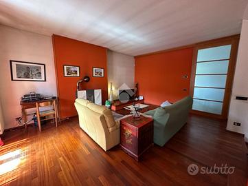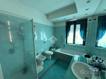 Al piano superiore si articola la zona giorno composta da: cucina abitabile (con accesso al balcone), soggiorno (con accesso al terrazzo) e servizio finestrato (dotato di doccia). Il piano secondo è stato destinato interamente alla zona notte, dove troviamo tre camere da letto, servizio finestrato (dotato di vasca e doccia) e ripostiglio.