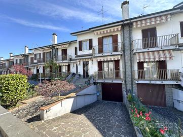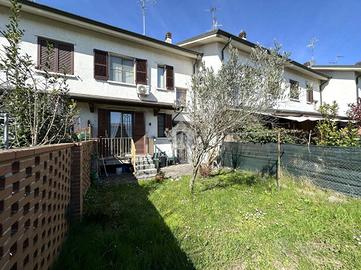 PAULLO Nelle immediate vicinanze della nuova zona commerciale, a pochi passi dal parco San Tarcisio, da tutti i servizi principali, dalla fermata dell'autobus che permette un collegamento diretto verso San Donato/Milano, Lodi e Crema. Proprietà inserita in contesto residenziale di sole ville, edificate negli anni Ottanta. Villa a schiera centrale con giardino privato, sviluppata su una metratura complessiva pari a 120 mq articolata su due piani abitativi oltre cantina. Al piano rialzato: ingresso principale si articola la zona giorno composta da: cucina abitabile (con accesso al balcone e uscita sul giardino), soggiorno (con accesso al balcone) e servizio finestrato (dotato di doccia). Il piano primo è stato destinato interamente alla zona notte, dove troviamo tre camere da letto, servizio finestrato (dotato di vasca). Inoltre l'unità è stata dotata di: giardino privato fronte e retro, porta blindata, riscaldamento autonomo con caldaia a condensazione, infissi in aluminio (doppio vetro), persiane, zanzariere, pavimentazione in ceramica, citofono, ed esposizione Est-Ovest. Completa la proprietà il vano autorimessa.