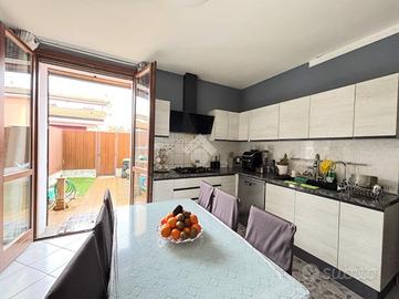 PEGOGNAGA: in zona centrale e comoda a tutti i principali servizi, proponiamo in vendita villa a schiera centrale, libera su due lati. Internamente così disposta: ingresso soggiorno, cucina separata abitabile e un primo servizio con lavanderia al piano terra. Tramite la scala interna presente in soggiorno, si accede alla zona notte posta al piano rialzato, che presenta due camere da letto matrimoniali, un secondo servizio e un ripostiglio attualmente adibito a cameretta/studio. Completano la soluzione il box e il giardino di pertinenza.