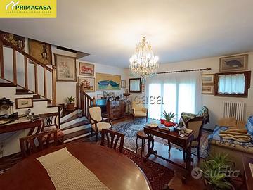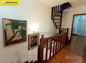 Proponiamo in vendita un'ampia porzione di villa a schiera, inserita in un tranquillo contesto residenziale lontano dal traffico e dal caos cittadino, sviluppata su più livelli e caratterizzata da spazi generosi e ben distribuiti. Al piano principale troviamo l'ingresso, la cucina abitabile, bagno di servizio ed un ampio e luminoso soggiorno con affaccio diretto sul giardino privato. Salendo al piano superiore si sviluppa la zona notte composta da tre camere da letto, un ulteriore bagno, un disimpegno ed all'ultimo piano, una pratica soffitta da adibire a locale hobby o zona studio. Al piano semi-interrato, sono presenti una taverna con piccola cucina, un comodo garage, una lavanderia ed un ripostiglio ricavato nel sottoscala. Soluzione ideale per famiglie che cercano indipendenza, comfort e tranquillità senza rinunciare alla comodità dei servizi. RIF 77