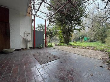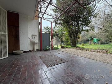 Villetta a schiera con giardino privato - Libera subito In zona tranquilla e residenziale proponiamo in vendita una villetta a schiera centrale con giardino privato, ideale per chi è alla ricerca di comfort, privacy e ambienti accoglienti. L'abitazione si apre su un balcone d'ingresso che conduce a un ampio e luminoso soggiorno, con accesso diretto al portico e al giardino di proprietà: lo spazio perfetto per pranzi all'aperto e momenti di relax. La cucina abitabile, spaziosa e funzionale, può ospitare comodamente un tavolo da sei persone, creando un ambiente conviviale per tutta la famiglia. Al piano superiore, raggiungibile tramite una comoda scala in muratura, troviamo tre camere da letto e doppi servizi. La camera matrimoniale è arricchita da un balcone privato con piacevole vista sul giardino. Il piano interrato completa la proprietà con un ampio ripostiglio, una spaziosa cantina e un comodo box auto. È inoltre possibile parcheggiare un'ulteriore auto sulla rampa di accesso. Le finiture comprendono pavimentazione in cotto rosa nella zona giorno, scala rivestita in cotto e parquet nelle camere. L'immobile è libero subito e necessita di alcuni interventi di ristrutturazione, offrendo così l'opportunità di personalizzare gli spazi secondo il proprio gusto. Le immagini presenti nell'annuncio sono puramente indicative e hanno lo scopo di suggerire possibili soluzioni di arredo interno. Una soluzione ideale per famiglie o per chi desidera vivere in un contesto sereno, senza rinunciare agli spazi e al comfort di una casa indipendente.