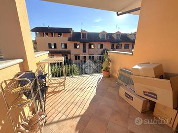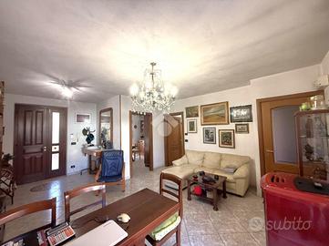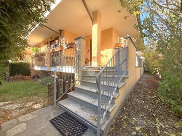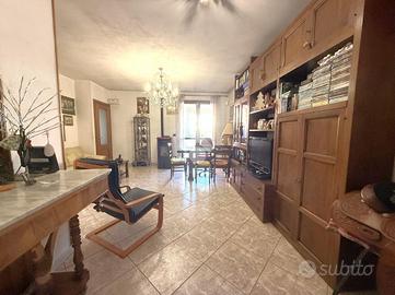 L'abitazione si sviluppa su più livelli e si distingue per la luminosità e la cura degli ambienti. Al piano terreno troviamo l'ingresso su un'ampia sala, accogliente e ben disposta, con accesso diretto al terrazzo -- uno spazio perfetto per pranzi all'aperto e momenti di relax. La cucina è spaziosa e funzionale, mentre il bagno di servizio completa il piano con praticità.