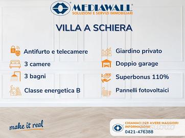 (Riferimento: BS-033-RV) Pordenone - località Vallenoncello (Rif. BS-033-RV) VILLA A SCHIERA INIZI 2000 | CLASSE ENERGETICA B | SUPERBONUS 110% | 3 CAMERE DA LETTO | 3 BAGNI | RISTRUTTURATA | PANNELLI FOTOVOLTAICI DA 6KW | BATTERIE DI ACCUMULO DA 13KW | INFISSI IN TRIPLO VETRO-PVC | IMPIANTO ANTIFURTO CON VIDEOCAMERE DI SORVEGLIANZA | DOPPIO GARAGE | GIARDINO DI PROPRIETA' | PATIO ESTERNO | ZANZARIERE | PRESA AUTO ELETTRICA | A pochi minuti dal cuore di Pordenone, in un contesto residenziale tranquillo e ben servito da negozi e servizi di ogni genere, proponiamo in vendita una splendida villetta a schiera caratterizzata da ampi spazi, disposta su tre livelli e inserita in un complesso di recente costruzione. L'immobile è stato oggetto di una ristrutturazione completa grazie al Superbonus 110%, che ha interessato il tetto, le grondaie, il cappotto esterno, pannelli fotovoltaici, caldaia a condensazione. Anche gli interni sono stati rinnovati negli ultimi anni, regalando alla casa uno stile moderno e funzionale. L'immobile gode di una razionale suddivisione degli spazi interni, ed è attualmente così disposto: - PIANO TERRA: ingresso con giardino frontale, ariosa e luminosa zona living, bagno di servizio con box doccia, sala da pranzo e ampia cucina abitabile con accesso diretto al patio sul retro con pergola, perfetto per momenti di relax o convivialità all'aperto anche in giornate di pioggia; - PIANO PRIMO: tre ampie camere da letto di cui una matrimoniale, una doppia ed una singola, due bagni, di cui uno finestrato con vasca e uno di servizio; - PIANO SECONDO: ampia soffitta finestrata e coibentata. - PIANO SEMINTERRATO: garage doppio di 57 mq, comoda lavanderia e centrale termica. La casa, inizialmente studiata per il mercato americano, presenta generosi spazi e comfort, tra cui l'accesso diretto dal garage. Finiture: portoncino blindato, pannelli fotovoltaici da 6kw con batterie di accumulo da 13k