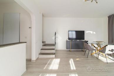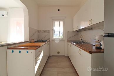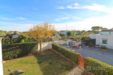 Al piano terra, la villa offre una luminosa zona soggiorno-pranzo, caratterizzata da un design aperto che si estende verso una pratica retrocucina con ripostiglio e lavanderia.