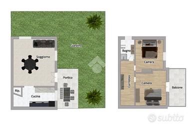 L'ingresso indipendente vi accoglie su un vialetto ornato da un ampio giardino, perfetto per chi desidera uno spazio verde. Il portico spazioso è ideale per godersi cene all'aperto in compagnia di amici e famiglia.