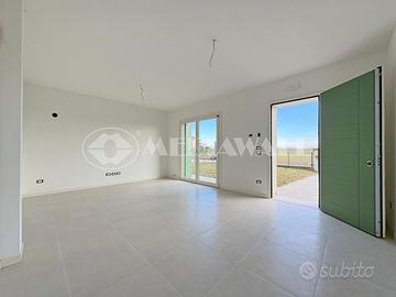 (Riferimento: BR-342-RV) Portogruaro - Giussago (Rif: BR-343-RV) VILLETTA A SCHIERA DI TESTA - POSSIBILITA' DI PERSONALIZZAZIONE - CLASSE A4 - 3 CAMERE 3 BAGNI - AMPIE METRATURE - COMODO GIARDINO - GARAGE - 1 POSTO AUTO SCOPERTO - OTTIME FINITURE - AREA RESIDENZIALE TRANQUILLA A Giussago di Portogruaro, in una laterale di via Riviera, proponiamo questa esclusiva villetta a schiera di testa, costruita nel 2021 e attualmente al grezzo, che viene venduta dall'impresa costruttrice in classe energetica A4. Ideale per famiglie si estende su 125 mq così divisi; AL PIANO TERRA, praticità regna sovrana: garage di 20 mq con basculante motorizzato, sala da pranzo/cucina di 18 mq separata da un disimpegno dal generoso soggiorno di 24 mq, che collega la zona lavanderia al bagno cieco con doccia e alle scale per il piano superiore. AL PIANO PRIMO, privacy e versatilità per tutti: un secondo disimpegno distribuisce la camera matrimoniale di 14 mq con bagno padronale finestrato e doccia (en-suite per relax totale), un bagno comune servito da doccia per le altre stanze, un ripostiglio utile, una camera doppia di 11 mq e una singola di 9 mq - perfette per figli, ospiti o studio. ESTERNO generoso: doppia soluzione con giardino privato recintato su due lati di 175 mq o su tre lati di 250mq per pranzi estivi o giochi, più due posti auto scoperti interni alla proprietà. Finiture e Costruzione L'immobile include porte blindate classe 3, infissi PVC Internorm con triplo vetro e cornici MDF laccato personalizzabili, con opzione tende motorizzate e materiali eco-compatibili per classe A4. Pareti isolate con cappotto EPS 14 cm, tetto con travi legno, perline, tegole e pannelli fibra di legno 10+6 cm. Vuoto sanitario igloo, riscaldamento a pavimento con predisposizione split, pavimenti in gres al piano terra (incluso garage) e legno al primo. Investi ora e risparmia con le agevolazioni! Scegli finiture su misura per un tocc