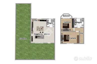 Salendo si sviluppa la soluzione di circa 100mq. Ingresso al piano terra, dove si apre la possibilità di creare una zona giorno luminosa e accogliente, con accesso al giardino che si sviluppa su due lati, completa di un pratico bagno di servizio. Al primo piano, invece, la zona notte offre la possibilità di realizzare due ampie camere da letto e un secondo bagno, garantendo comfort e privacy. Completa il piano un balcone che aggiunge ulteriore valore e un tocco di eleganza alla proprietà.