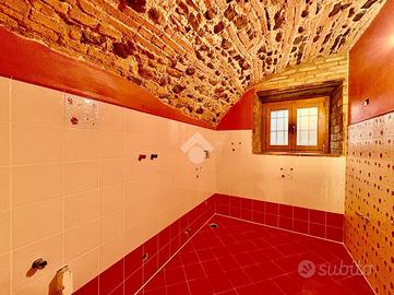 Accedendo alla soluzione dal piano terra ci accoglie la zona giorno composta da soggiorno con accesso diretto al cortile, la cucina openspace, la taverna con il bagno finestrato.