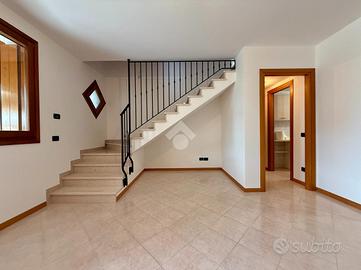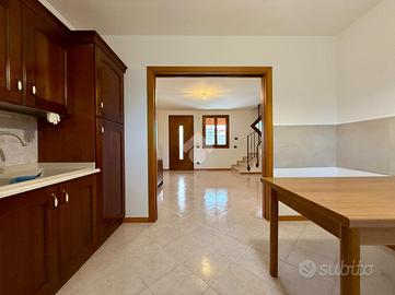 A Pravisdomini all'interno di strada privata e residenziale, villetta a schiera in ottime condizioni edificata nel 2006, libera fin da subito.