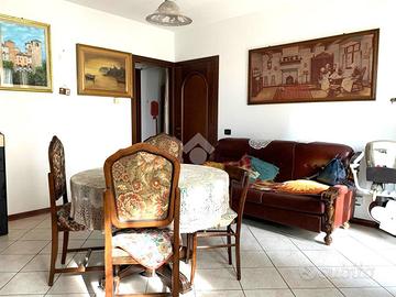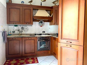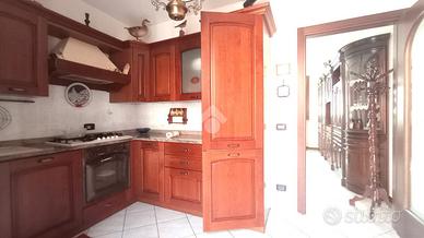 L'ingresso principale dell'abitazione, posto al pian terreno, apre sulla zona giorno, che e composta dall'ampio soggiorno, dalla cucina abitabile e dotata di balcone, e dal primo bagno.