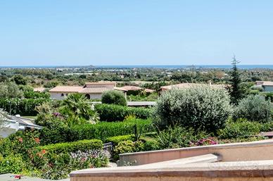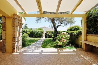 (Riferimento: 14) Pula Is Molas All'interno dell'esclusivo e riservato golf club di Is Molas disponiamo di una villetta composta da ingresso soggiorno con cucina-tinello interamente realizzata a mano in muratura e legno massello, disimpegno, due camere e due bagni. Loggiato, curato giardino fronte retro e terrazza panoramicissima completano questa interessante proprietà.