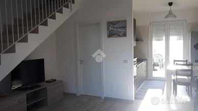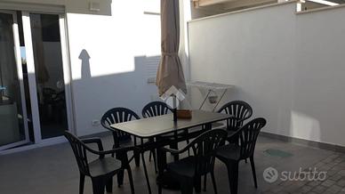 Marina di Pulsano località Lido Silvana a pochi passi dal mare, disponiamo per LOCAZIONE settimanale di una Villa a Schiera su due livelli completamente AMMOBILIATA e GRAZIOSA di 80 mq. circa e composta al piano terra da ingresso, salone con cucina abitale, bagno e annesso giardino, e al piano primo di due camere, disimpegno, bagno e due balconi.