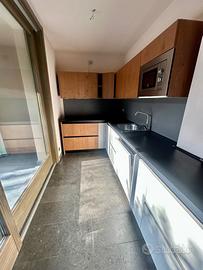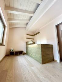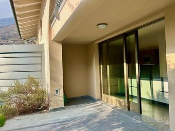 (Riferimento: AO_589) Quart: a 5 minuti dall'uscita dell'autostrada e a 15 minuti dal centro di Aosta, CasaMerli Immobiliare, propone in affitto elegante soluzione abitativa di mq 150 circa arredata con sola cucina,organizzata su 3 livelli terra-cielo, e così composta: al piano terra ingresso con bagno, ampio living con affaccio su area esterna con giardino ad uso esclusivo di mq30 circa; al piano I° camera matrimoniale con bagno padronale, cameretta con terrazzo coperto, studiolo e bagno con doccia. Al piano seminterrato: secondo ingresso con ampio e comodo disimpegno, lavanderia, cantina, taverna e bagno. La proprietà si completa con n. 1 garage e n.1 posto auti esclusivo coperto.Piccola area verde ad uso esclusivo. No animali. Canone mensile €1250