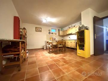 La cucina è abitabile e in dialogo con il soggiorno, con accesso diretto al portico, ideale per vivere l'esterno durante la bella stagione. La sua disposizione, leggermente arretrata rispetto alla zona living, è stata studiata per garantire funzionalità e una piacevole sensazione di riservatezza. Completa il piano il bagno di servizio, dotato di doccia.
