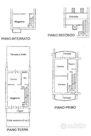L'immobile si sviluppa su due piani abitativi, più una mansarda ed è composto al piano terra da un luminoso soggiorno, una cucina abitabile, un bagno di servizio e un pratico disimpegno.