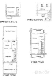 L'immobile si sviluppa su due piani abitativi, più una mansarda ed è composto al piano terra da un luminoso soggiorno, una cucina abitabile, un bagno di servizio e un pratico disimpegno.