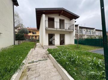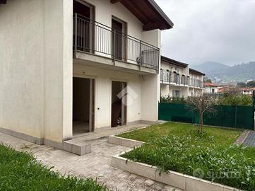 RANICA Nel centro di Ranica, sorgono nella nuova Residenza 'I Principi' 4 villette a schiera, ognuna di esse con ingresso pedonale indipendente. La prima villetta - l'unica rimasta disponibile - presenta un'area esterna di 150 mq divisi tra giardino ed area piastrellata, lungo i 3 lati liberi dell'abitazione. Dall'ingresso privato dal giardino si accede al piano terra della casa, il quale gode di una spaziosa zona giorno composta da soggiorno ed angolo cottura con accesso diretto all'area esterna. Dal disimpegno raggiungiamo il bagno finestrato ed un piccolo ripostiglio. Dalla scala (da creare) del soggiorno si accede al primo piano, che presenta 2 ampie camere da letto, entrambe con balcone privato, e un generoso disimpegno dal quale si giunge al secondo bagno della casa. La soluzione viene venduta nello stato in cui si trova attualmente, quindi al grezzo, con completamento a carico dell'acquirente. Possibilità di box a parte del prezzo. A coronamento del tutto, la villetta è situata nel centro storico del paese, vale a dire a portata di mano dei principali servizi che un cittadino ricerca: panifici, bar, negozi, banche, tutto raggiungibile comodamente a piedi.