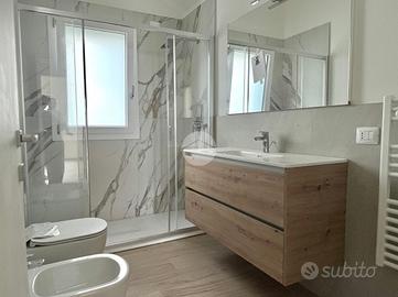 La cucina è separata e funzionale, mentre i due bagni, uno per piano, assicurano praticità.