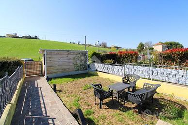 In zona tranquilla e riservata di Recanati, precisamente in Contrada Ricciola, proponiamo in vendita una graziosa villetta a schiera inserita in un contesto piacevole e ben abitato, caratterizzato dalla quiete tipica delle colline recanatesi ma allo stesso tempo comodo per raggiungere il centro cittadino e i principali servizi. La villetta, dotata di ingresso indipendente e libera su due lati, si sviluppa su due livelli ed è preceduta da una piacevole terrazza con giardino all'ingresso, uno spazio esterno accogliente e riservato, ideale per momenti di relax all'aperto o per vivere la casa anche nella bella stagione. Entrando nell'abitazione si accede alla zona giorno composta da soggiorno con cucina a vista, un ambiente luminoso e ben organizzato dal quale si sviluppa il disimpegno che conduce alla zona notte. Qui troviamo una camera matrimoniale e una cameretta con accesso diretto alla corte sul retro e un bagno dotato di finestra velux motorizzata. Dalla zona giorno una scala interna conduce al piano sottostante, dove è stato ricavato un ampio locale attualmente adibito a secondo soggiorno, caratterizzato dalla presenza di un camino canalizzato che contribuisce al riscaldamento di tutta l'abitazione. Questo sistema permette di diffondere il calore nei vari ambienti della casa, affiancandosi all'impianto tradizionale con termosifoni e garantendo così un comfort abitativo. Sullo stesso livello sono presenti anche un bagno finestrato con predisposizione per essere trasformarlo in cucina e la porta che consente il collegamento diretto con l'interno del garage. L'abitazione si distingue inoltre per la presenza di inverter canalizzato, che assicurano comfort durante tutto l'anno e per finiture di pregio che valorizzano gli ambienti e conferiscono all'immobile un aspetto curato ed elegante. La proprietà è completata dal garage e da due comodi posti auto scoperti. Grazie alla sua disposizione su due livelli, agli spazi esterni e all'ingresso indipendente, l'immobile r