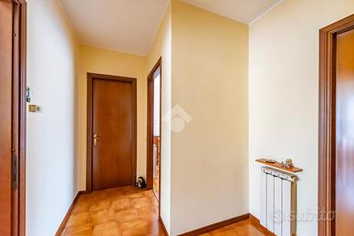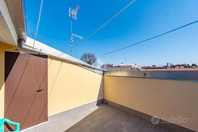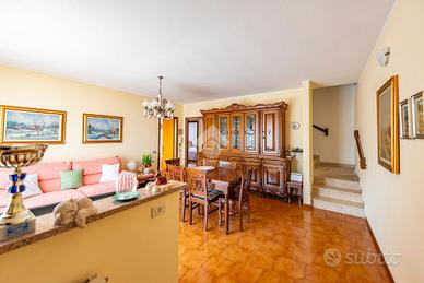 Spazi, comfort e indipendenza in un contesto residenziale tranquillo In una piacevole zona residenziale, porzione di villetta a schiera di tre unità caratterizzata da ambienti funzionali e ben distribuiti. Al piano seminterrato si trovano il box doppio, la lavanderia e un'ampia zona versatile perfetta come area conviviale, spazio hobby o ambiente da personalizzare secondo le proprie esigenze. Il piano rialzato accoglie un luminoso soggiorno, la cucina, due camere, il bagno e un pratico ripostiglio, garantendo una distribuzione armoniosa tra area living e zona notte. Sia dalla cucina che dal soggiorno si accede al terrazzo, uno spazio fruibile e ideale per godersi le giornate più soleggiate. Il piano mansardato, completamente rifinito, è un ampio open space con camino e accesso al terrazzo: un ambiente versatile, elegante e ricco di potenziale, perfetto come area relax, studio privato o spazio da personalizzare secondo il proprio stile di vita. Tutti i livelli sono collegati da una comoda scala interna, che garantisce continuità e funzionalità agli spazi. Una soluzione ideale per chi desidera un tocco di indipendenza e comfort in un contesto tranquillo e curato.