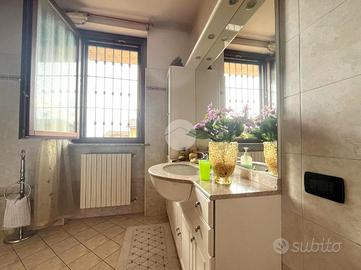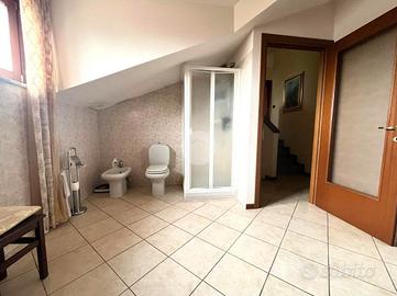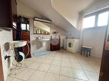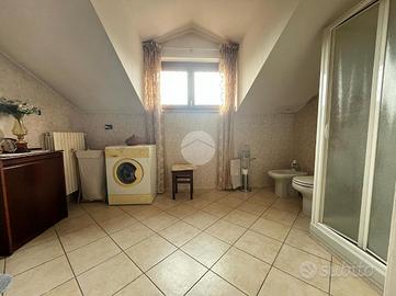 Salendo al piano superiore troviamo la zona notte: 4 camere da letto (di cui due matrimoniali), un bagno padronale con vasca e un secondo bagno, con doccia e attacchi della lavatrice.