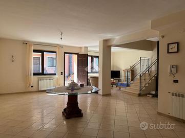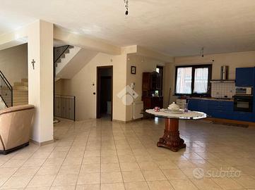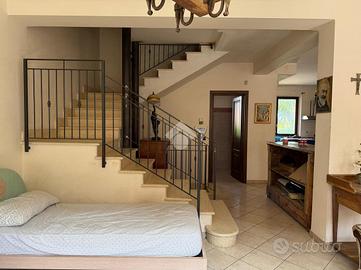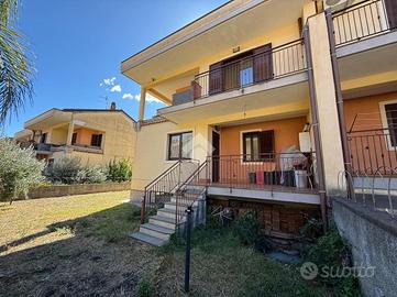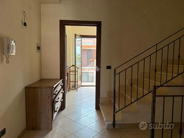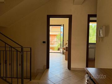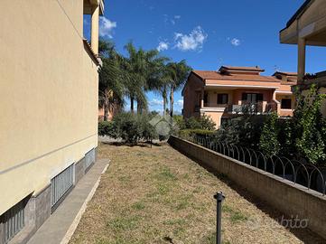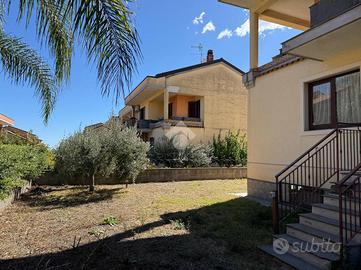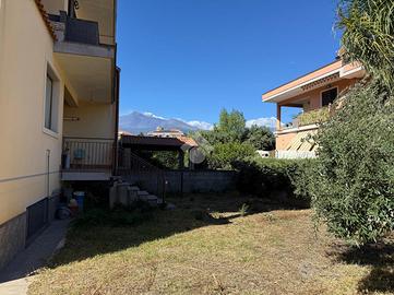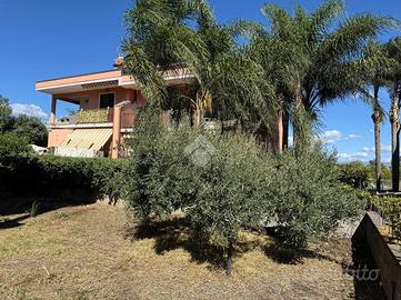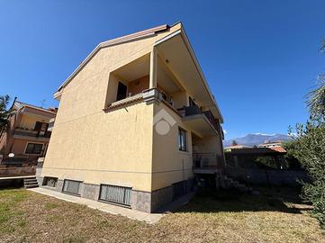 La villa: libera su tre lati, con ingresso dal cortile privato, distribuita su tre livelli. Al piano terra la zona giorno, con cucina-soggiorno luminosa e un bagno. Al primo piano tre le camere da letto, un bagno comune ed uno in camera da letto principale.Tutti gli ambienti al primo piano hanno affaccio su balconi ampi con esposizione Nord e Sud con vista Etna e Mare. La scala interna da accesso al sottotetto di mq 20 mq ca, con terrazzo a livello di mq 10 panoramico. Al piano sottostrada il garage di 65 con buone rifiniture a cantina. Le condizioni interne sono buone, gli infissi in alluminio doppiovetro, riscaldamento autonomo. Dalla cucina si ha accesso al terrazzo a livello di mq 20 ed al giardino di proprietà di mq 206 a completare gli spazi esterni dell'immobile.