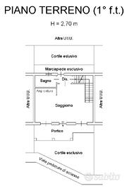 L'ingresso conduce a un luminoso open space climatizzato, composto da cucina abitabile, zona pranzo e soggiorno. Al piano terra si trova anche un bagno finemente ristrutturato. Dalla zona living si accede all'area esterna posteriore, ideale per chi cerca privacy e tranquillità.