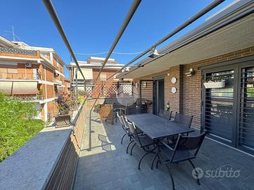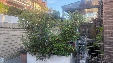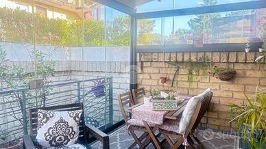Completa la proprietà un giardino di 100mq e box auto di 25mq con ingresso automatizzato e un posto auto scoperto interno alla proprietà. La soluzione si presenta in ottime condizioni interne ed esterne. Presenti pavimentazione in parquet e in gress porcellanato, porte blindate, domotica integrata, veneziane automatizzate, porte a scomparsa in legno, grate di sicurezza e predisposizione impianto allarme. L'accesso alla villa è consentito da ingresso pedonale e carrabile entrambi automatici. No spese condominiali.